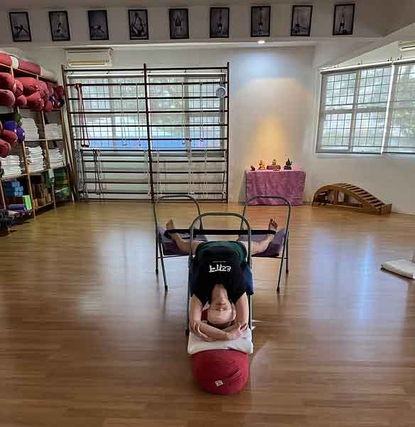 全てのプロップス(ウォールロープ・ボルスター・ブランケット・ブロック・ベルト・チェアなど)を完備し、静かな空間の中で、完全カスタマイズの指導を行います。